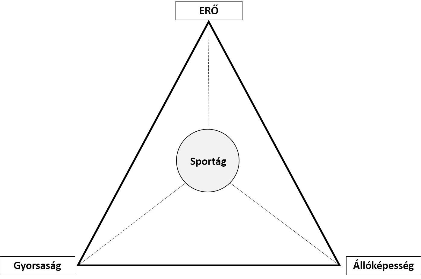 A háromszög minden csúcsa egy-egy alapvető kondicionális képességet jelképez: az erő az izomerő és robbanékonyság, a gyorsaság a mozgások sebessége, az állóképesség pedig a hosszabb távú teljesítmény fenntartásának képességét mutatja. Bompa elmélete szerint a megfelelő edzésprogramnak, a sportágnak és az adott versenycéloknak megfelelően, ciklusokban kell fejlesztenie ezeket a képességeket, biztosítva ezzel a kiegyensúlyozott és fokozatos fejlődést.